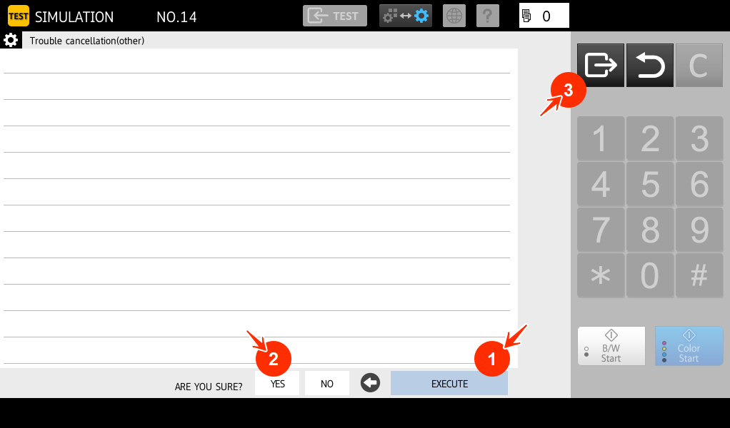 2. Enter the Simulation mode for your copier