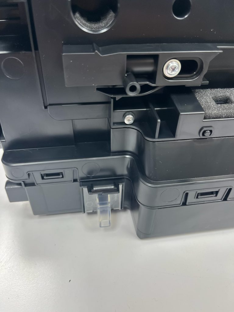 - Once you have emptied the tank into a bag and cleared the window the best you can, put the plug back in it and wipe it with a DRY cloth as best you can and re-insert it into the machine at the same angle you removed it, and click it into place. If you have gotten the toner out of the clear trap it should resume activity.
