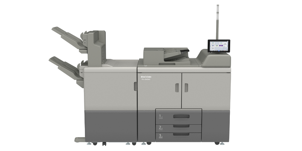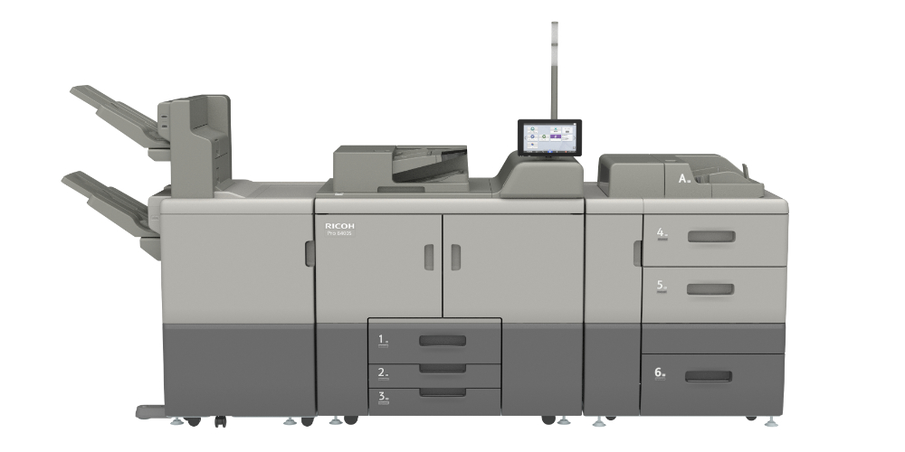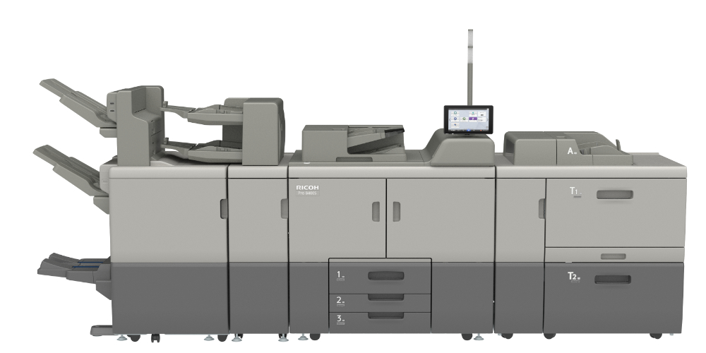 The RICOH Pro 8400s is an all-in-one monochrome digital press designed for reliable, high-speed production in office, in-plant, and light production environments. With fast output, advanced security, and an easy-to-use interface, it helps organizations print, scan, and share information efficiently and securely.