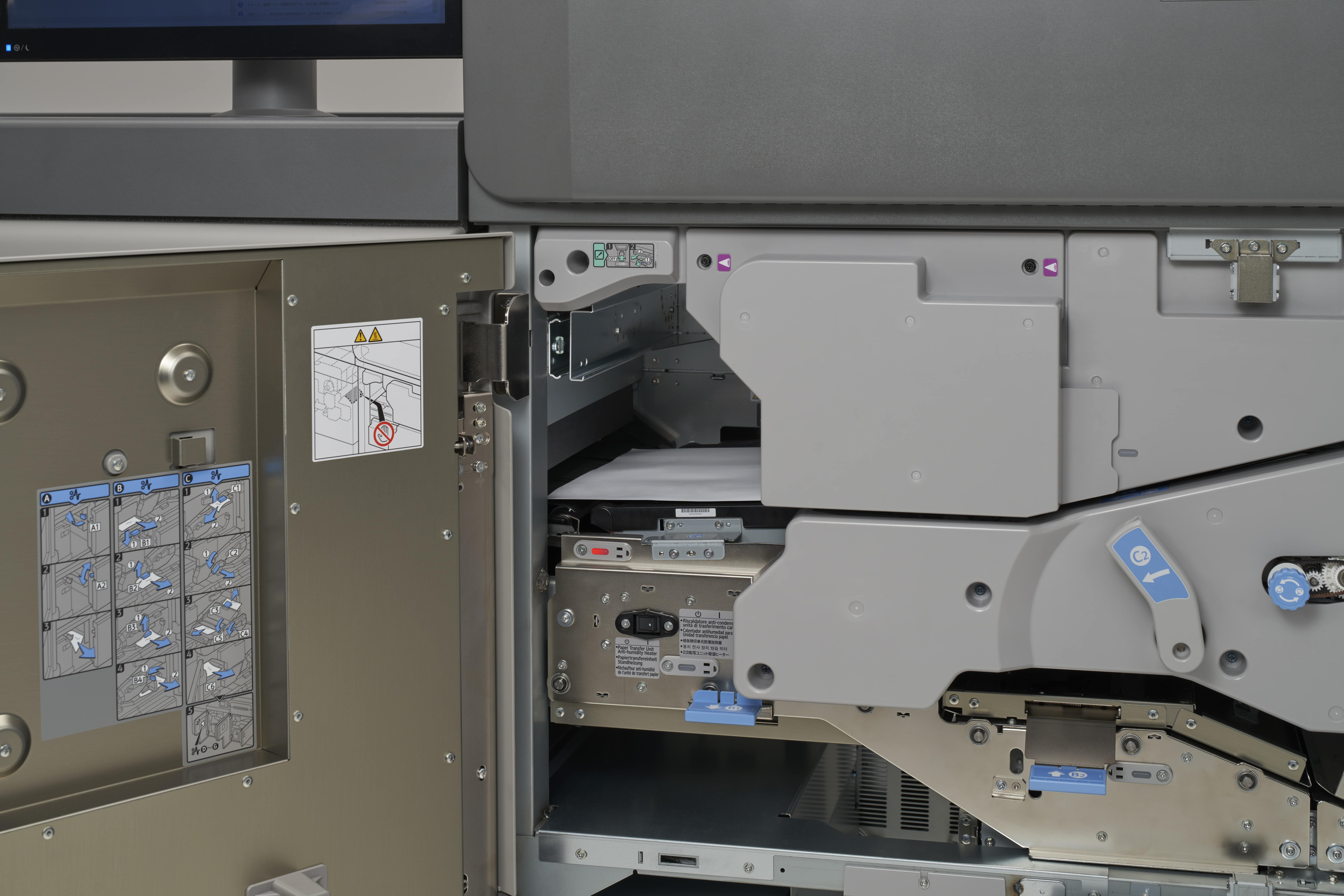 Handle more types of media, including up to 13″ × 19″ standard paper sizes, a 38″ oversize option, and heavy media up to 173 lb. cover (470 gsm), and keep more jobs in-house.