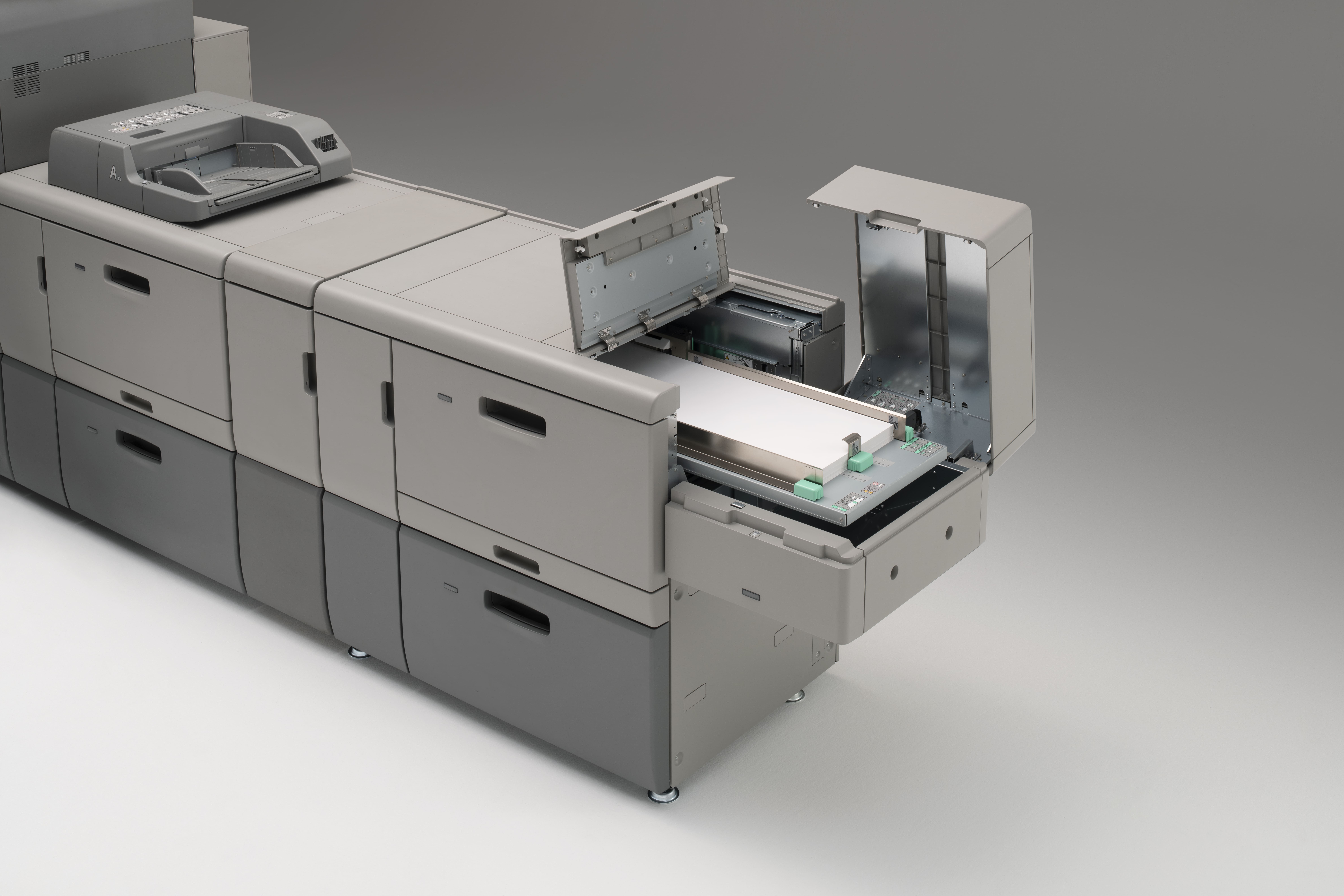 With a total paper capacity of 4,400 sheets, you can print with fewer reloads. Increase capacity to 18,100 sheets with optional paper sources.